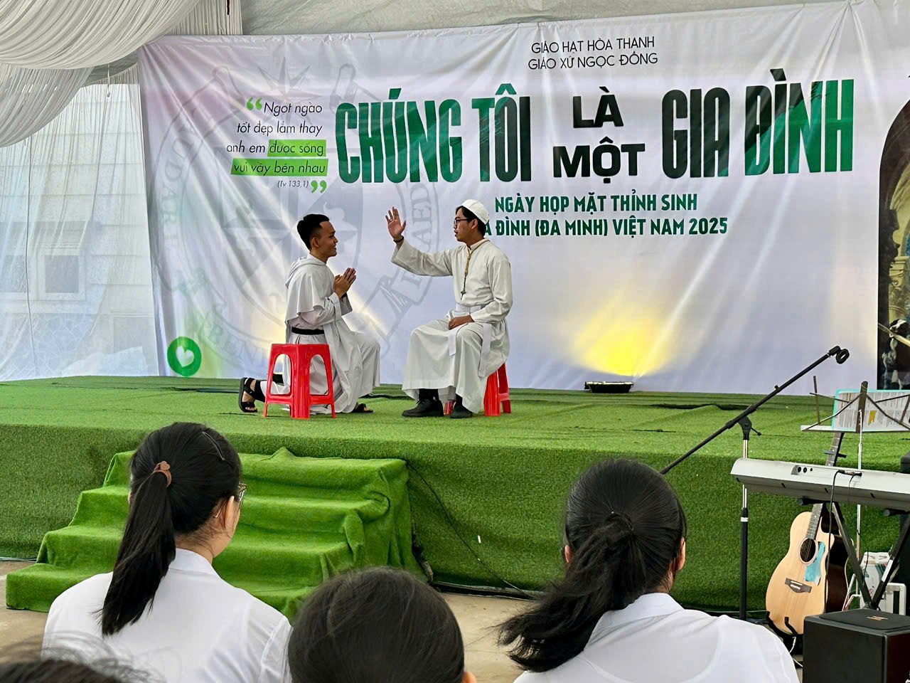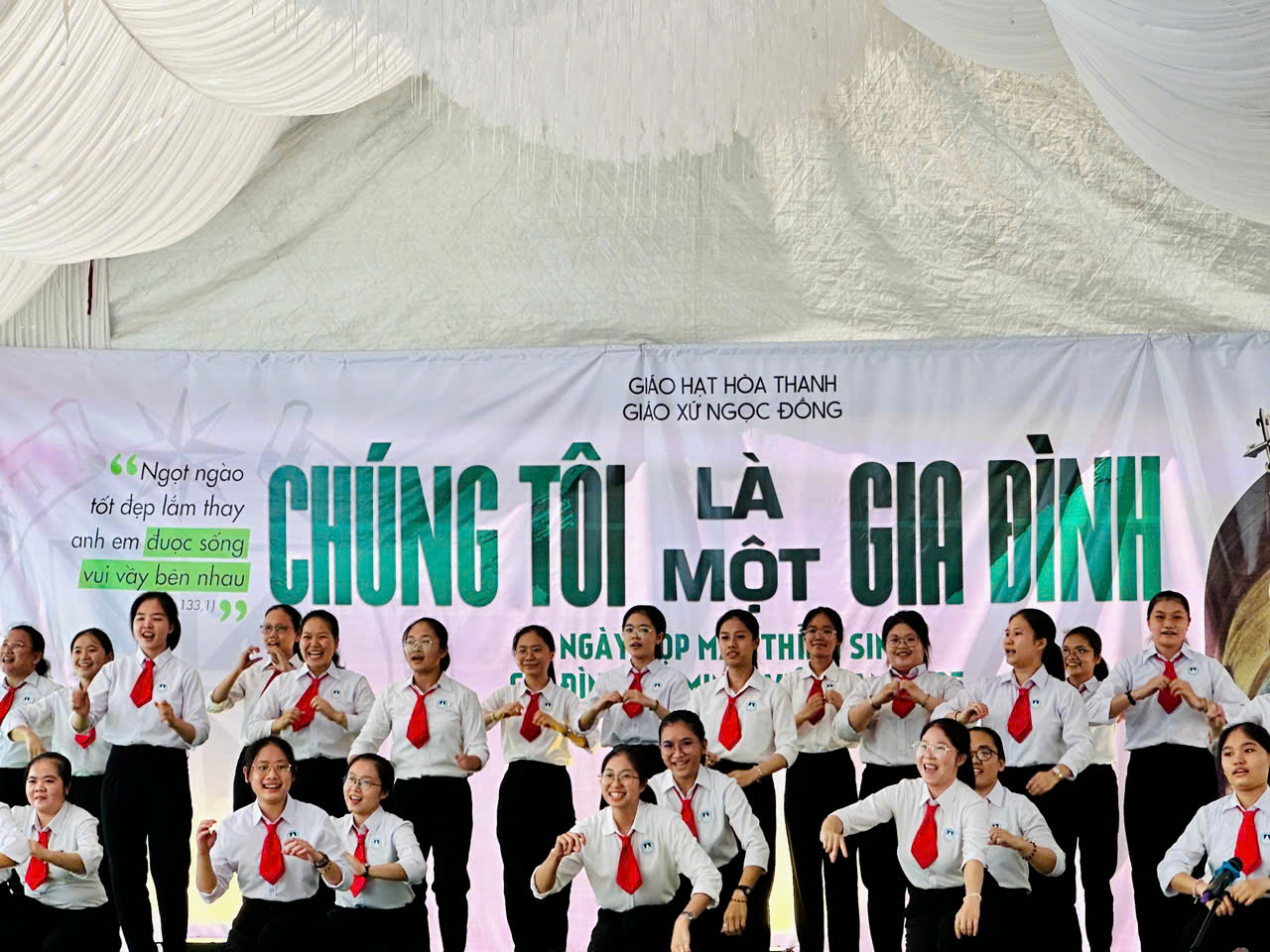Với chủ đề “Chúng tôi là một gia đình“, hơn mười đơn vị đã quy tụ về Giáo xứ Ngọc Đồng, Gp. Xuân Lộc đầy thân thương và gặp nhau trong tình gia đình thân thiết của một sáng Thứ Bảy yên bình. Gặp nhau để hy vọng. Như một gia đình, chúng ta dám mơ một giấc mơ lớn hơn: hiệp thông sứ vụ tương lai. Người trẻ là tương lai của Giáo hội, Thỉnh sinh là tương lai của Hội Dòng. Di sản của Cha Thánh rồi sẽ trao vào tay các em. Gia đình này rồi sẽ lớn thêm, biết nhau rồi sứ vụ tiến lên. Như một gia đình, chúng ta không chỉ bảo tồn gia sản mà còn thao thức tạo thêm cách thế cho gia sản ấy phát triển và hợp thời hơn.