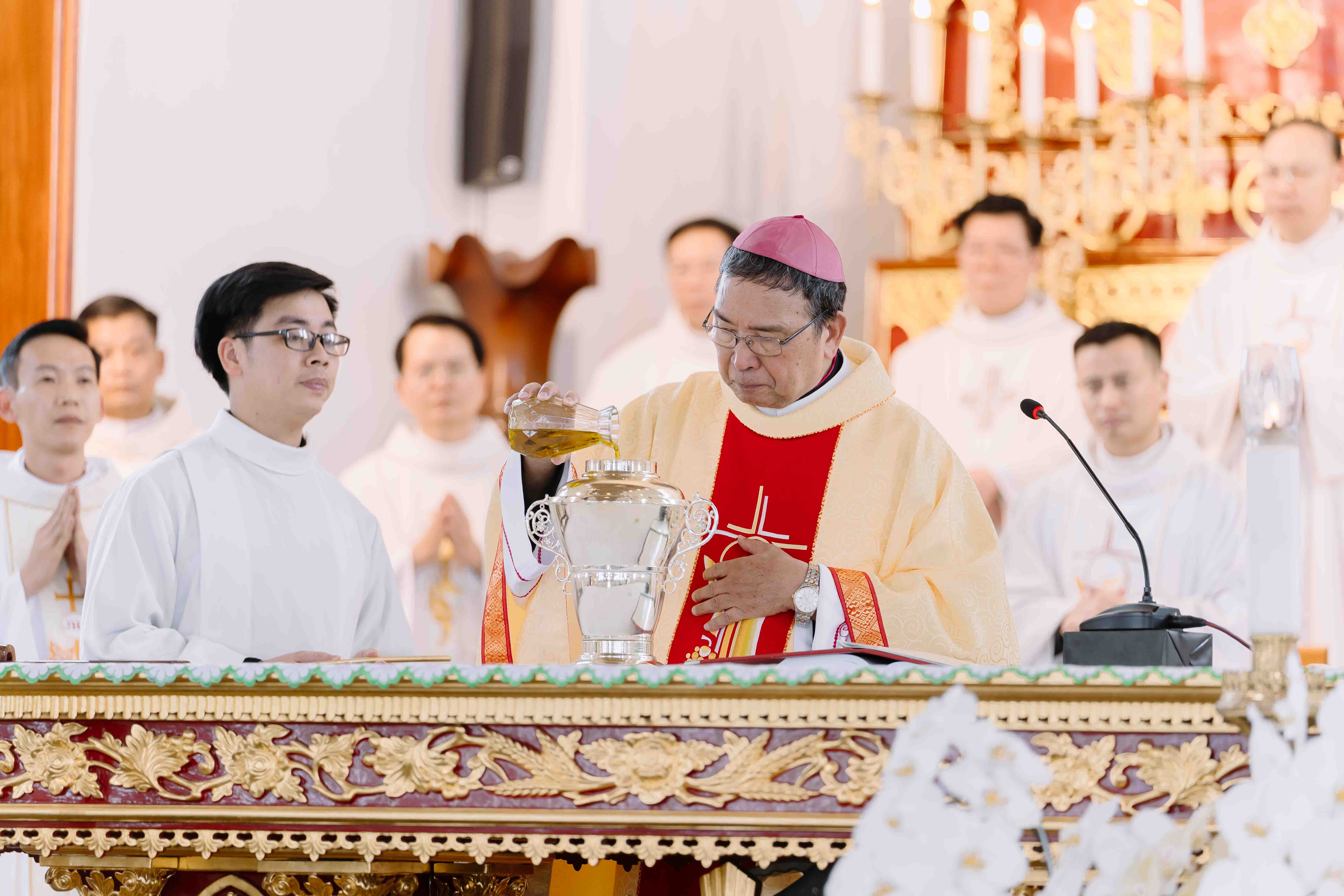 Đã có gần 30 linh mục đồng tế trong thánh lễ với Đức Tổng giám mục Giuse và hơn 300 tu sĩ và anh chị em tín hữu cùng hiệp dâng thánh lễ. Đây cũng là dịp ghi nhớ Hồng ân 25 năm Khấn dòng của nữ tu Anne Marie Chúa Ba Ngôi Hoàng Thị Vui, và ghi nhớ hồng ân Khấn trọng thể của nữ tu Marie Agnes Chúa Quan Phòng Phạm Thị Ngọc Loan.