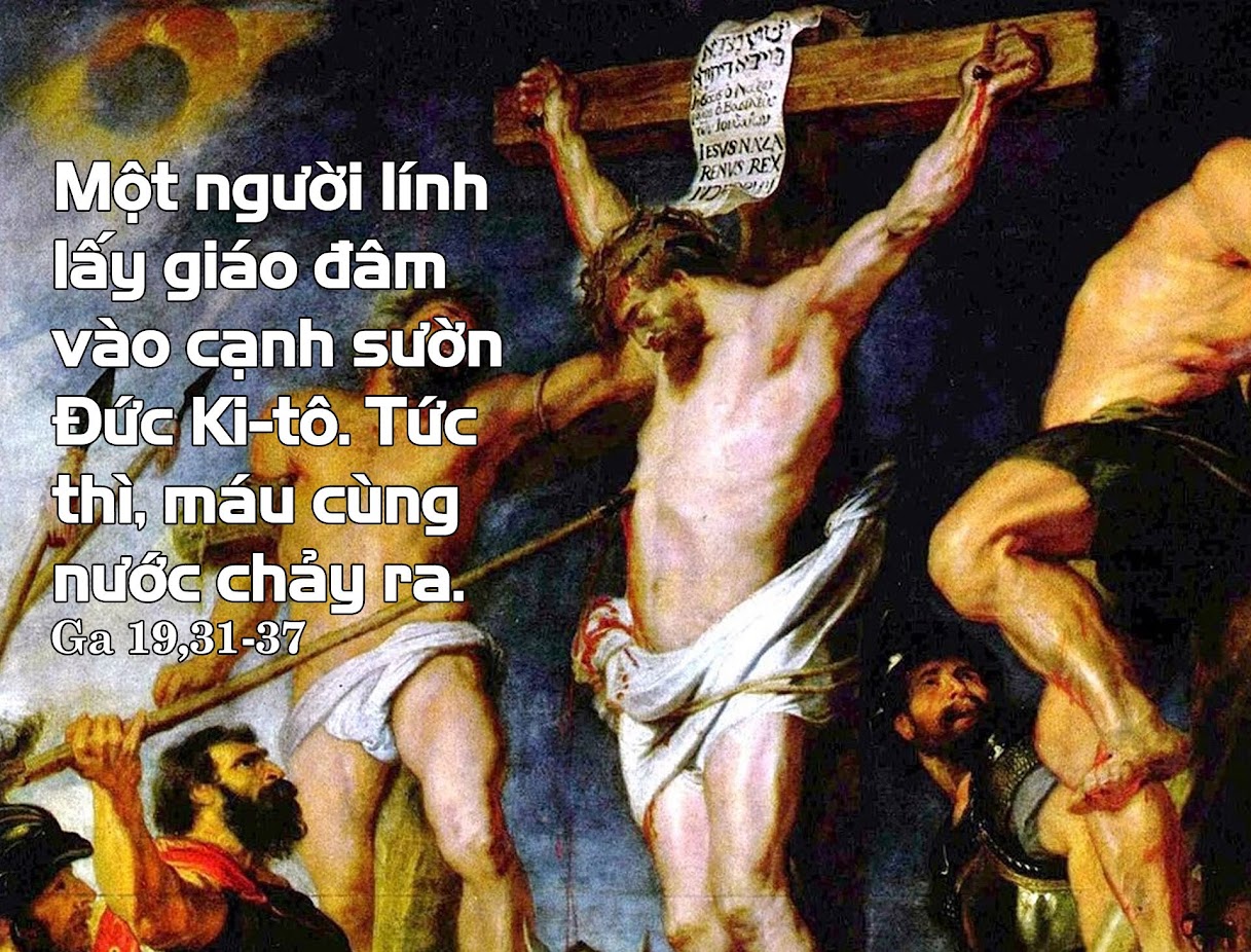Ghi nhớ: “Một người lính lấy giáo đâm vào cạnh sườn Người. Tức thì nước cùng máu chảy ra” (Ga 19,34).