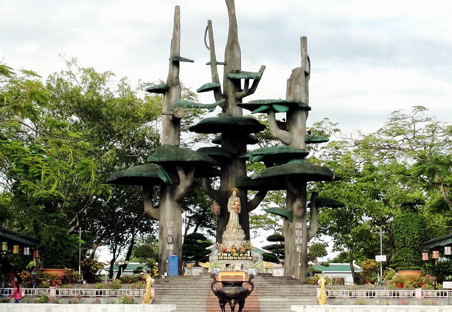Vương cung thánh đường La Vang bị bom đạn phá hủy hoàn toàn trong mùa hè đỏ lửa 1972, nay chỉ còn di tích tháp chuông.