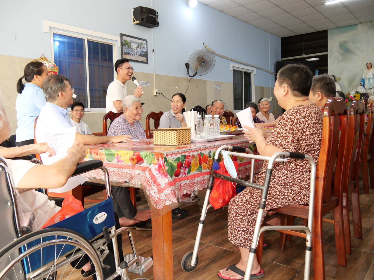 Sau khi tới nơi, anh em dành thời gian thăm hỏi và chia sẻ với các cụ đang được chăm sóc tại mái ấm. Cơ sở hiện có gần 100 cụ với nhiều hoàn cảnh khác nhau. Các cuộc gặp gỡ diễn ra trong bầu khí gần gũi, giúp anh em hiểu hơn đời sống của các cụ và nhu cầu thực tế tại đây.