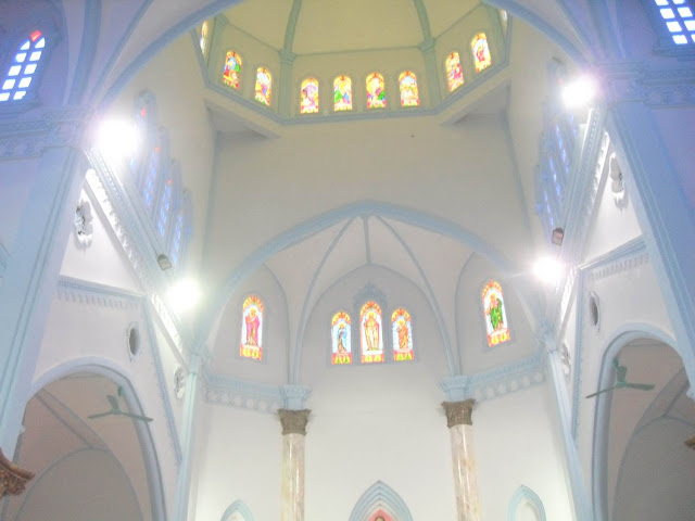 Đoàn chúng tôi vượt đường xa với những đồi xanh trập trùng tiến về phố núi Hòa Bình. Xe chao nghiêng lượn vòng, leo lên dốc xoáy đẹp như… “đường lên trời”, rồi đậu tận sân nhà thờ, bên tượng đài Chúa Thương Xót đang giơ tay đón chào và chúc lành cho đoàn con yếu đuối. Đền thánh tọa lạc trên mặt bằng thật rộng rãi thoáng mát.