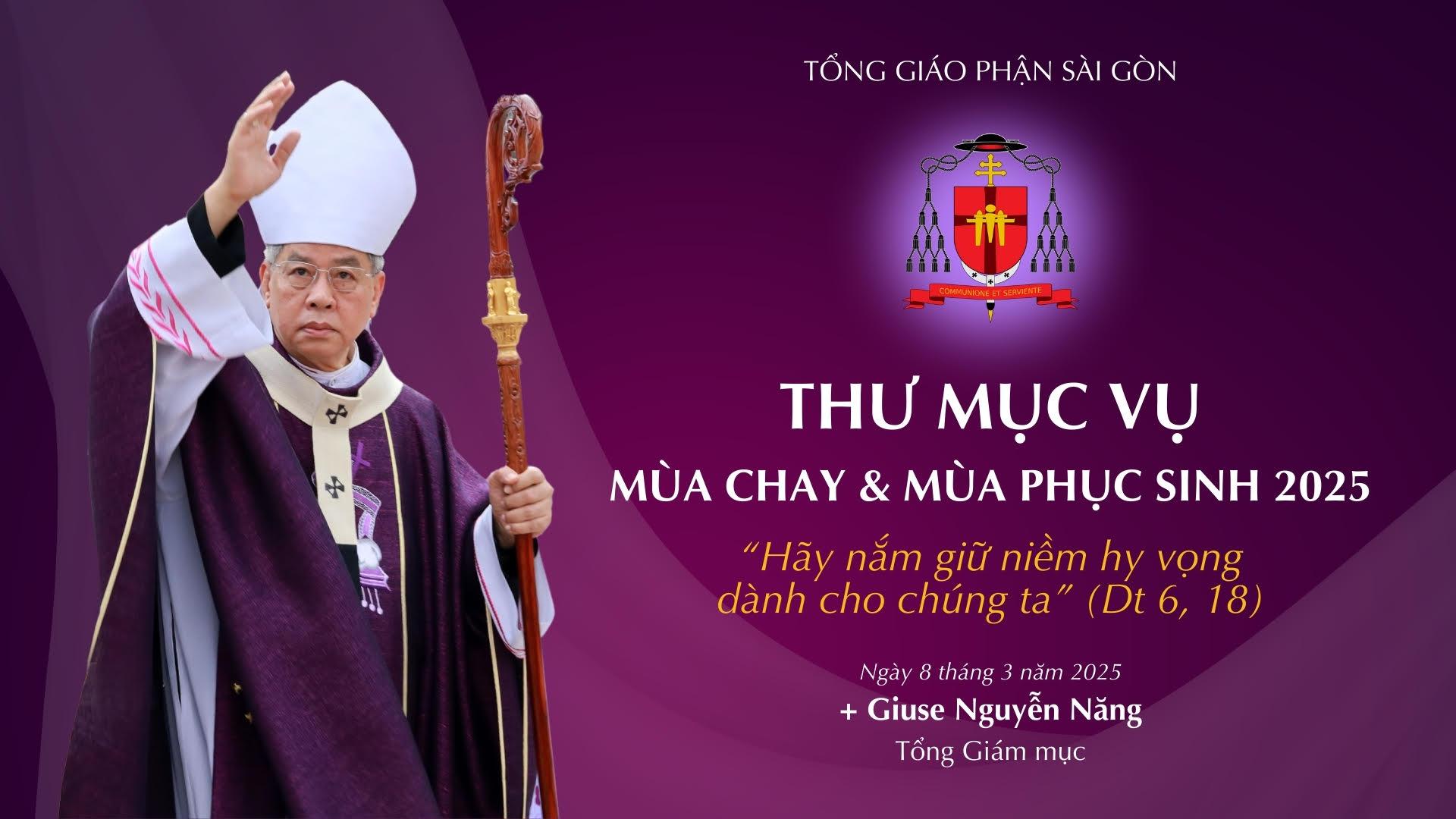 Ngày 08/3/2025, Đức Tổng Giám mục Giuse Nguyễn Năng đã gửi Thư mục vụ Mùa Chay và Phục Sinh cho cộng đoàn Dân Chúa Tổng Giáo phận Sài Gòn. Sau đây là nguyên văn Thư mục vụ của Đức Tổng Giám mục Giuse.