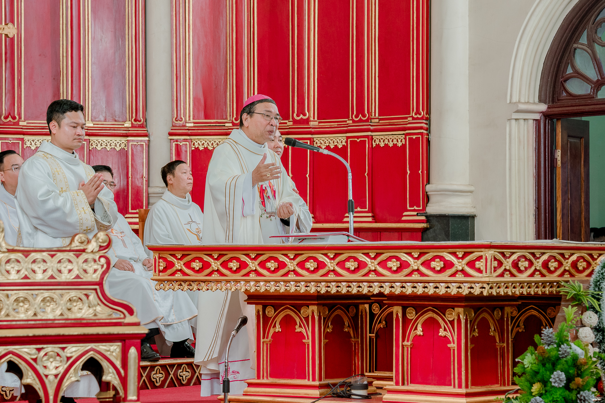 Khởi đi từ đoạn Tin Mừng lễ Thánh Gia, Đức cha nhấn mạnh đến mẫu gương sống động của Thánh Gia Thất – một gia đình thánh thiện nhưng rất gần gũi với phận người. Trước nghịch cảnh và bất an, Thánh Gia luôn tín thác vào Thiên Chúa và sống hy vọng. Đức cha tha thiết mời gọi các gia đình Công giáo, đặc biệt là các bậc làm cha mẹ, hãy đặt Chúa làm trung tâm, cùng lắng nghe nhau, để trở thành mái ấm mang Tin Mừng giữa thế giới đầy biến động.