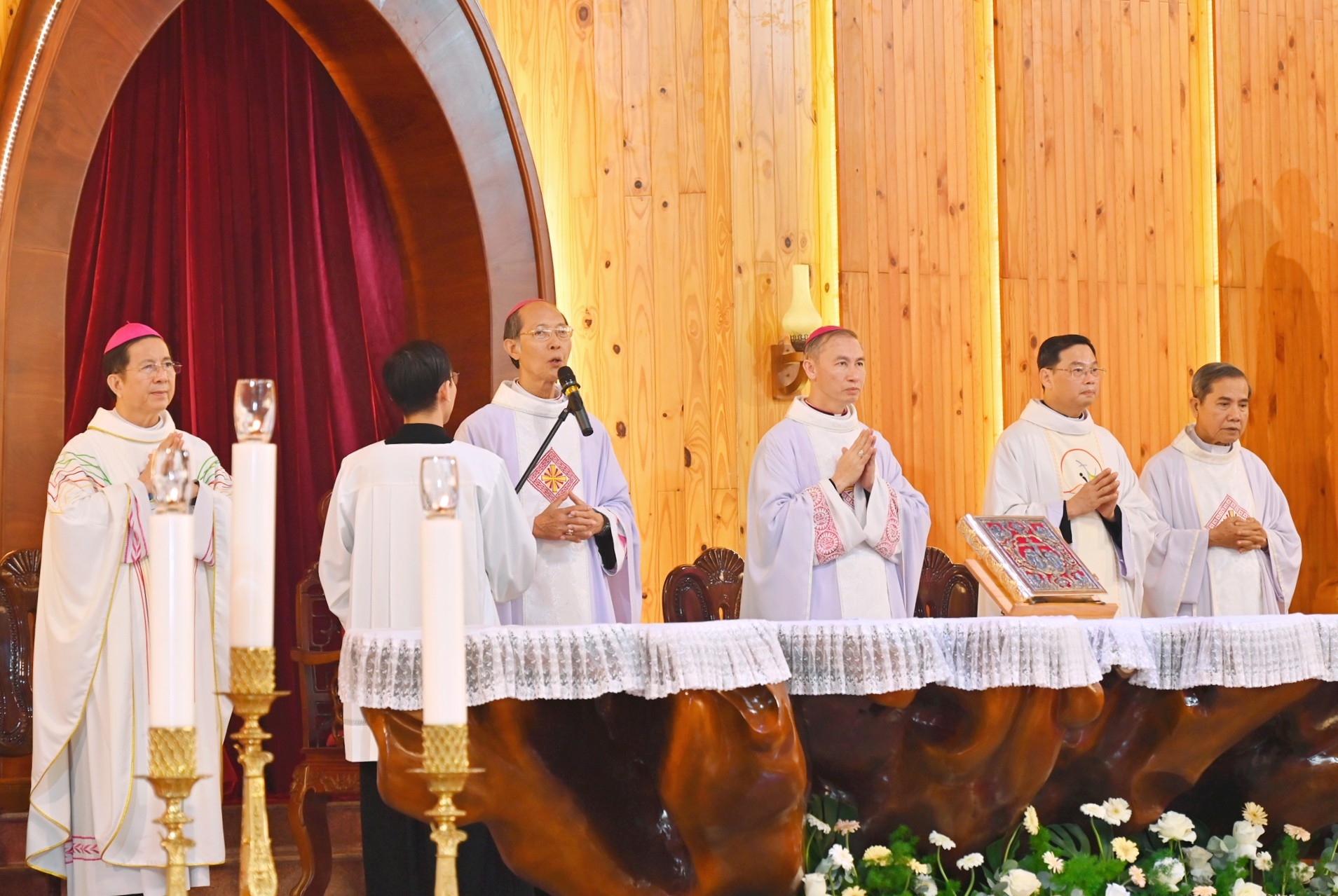 Hiệp dâng Thánh lễ có Đức cha cố Đaminh Nguyễn Chu Trinh; Đức cha Giuse Nguyễn Tấn Tước – Giám mục Giáo phận Phú Cường; Đức cha Đaminh Nguyễn Tuấn Anh – Giám mục Phụ tá Giáo phận Xuân Lộc; cha Phaolô Nguyễn Ngọc Phương – Giám đốc Đại Chủng viện Thánh Giuse Xuân Lộc; quý cha quản hạt, quý cha liên hệ với các tiến chức, cùng đông đảo tu sĩ, chủng sinh, thân nhân và cộng đoàn dân Chúa.