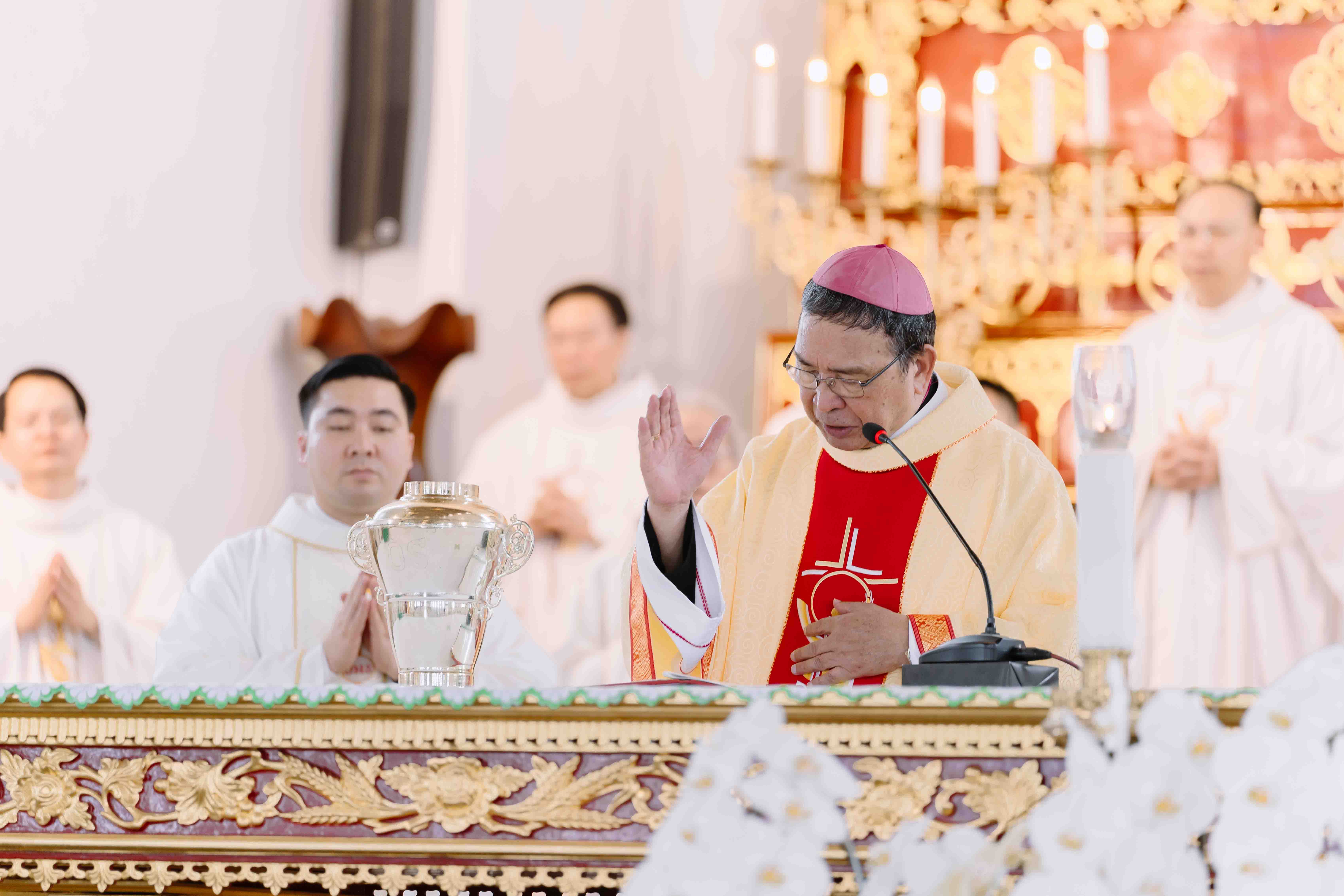 Vào lúc 8h30’ sáng thứ Năm ngày 02/4/2026, Đức cha Louis Nguyễn Anh Tuấn – Giám mục Giáo phận đã chủ sự thánh lễ Truyền Dầu tại nhà thờ Chính tòa Văn Hạnh. Thánh lễ Truyền Dầu đánh dấu sự khởi đầu của Tam Nhật Thánh với sự hiện diện đông đảo của linh mục đoàn, quý chủng sinh, quý tu sĩ nam nữ và đại diện cộng đoàn dân Chúa trong Giáo phận.