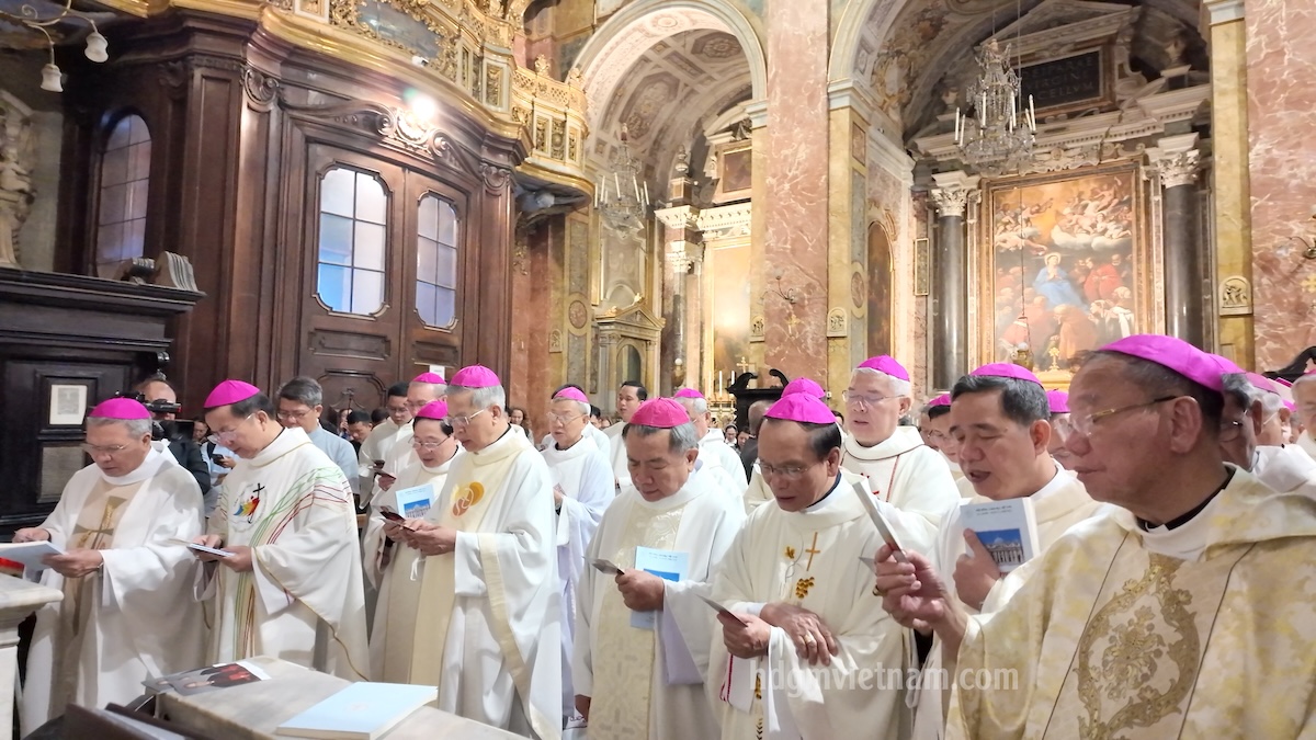 Niềm vui của ngày hội ngộ trở nên trọn vẹn và ý nghĩa hơn qua thánh lễ lúc 9h45’ do Đức cha Louis chủ tế cùng quý cha đồng tế.